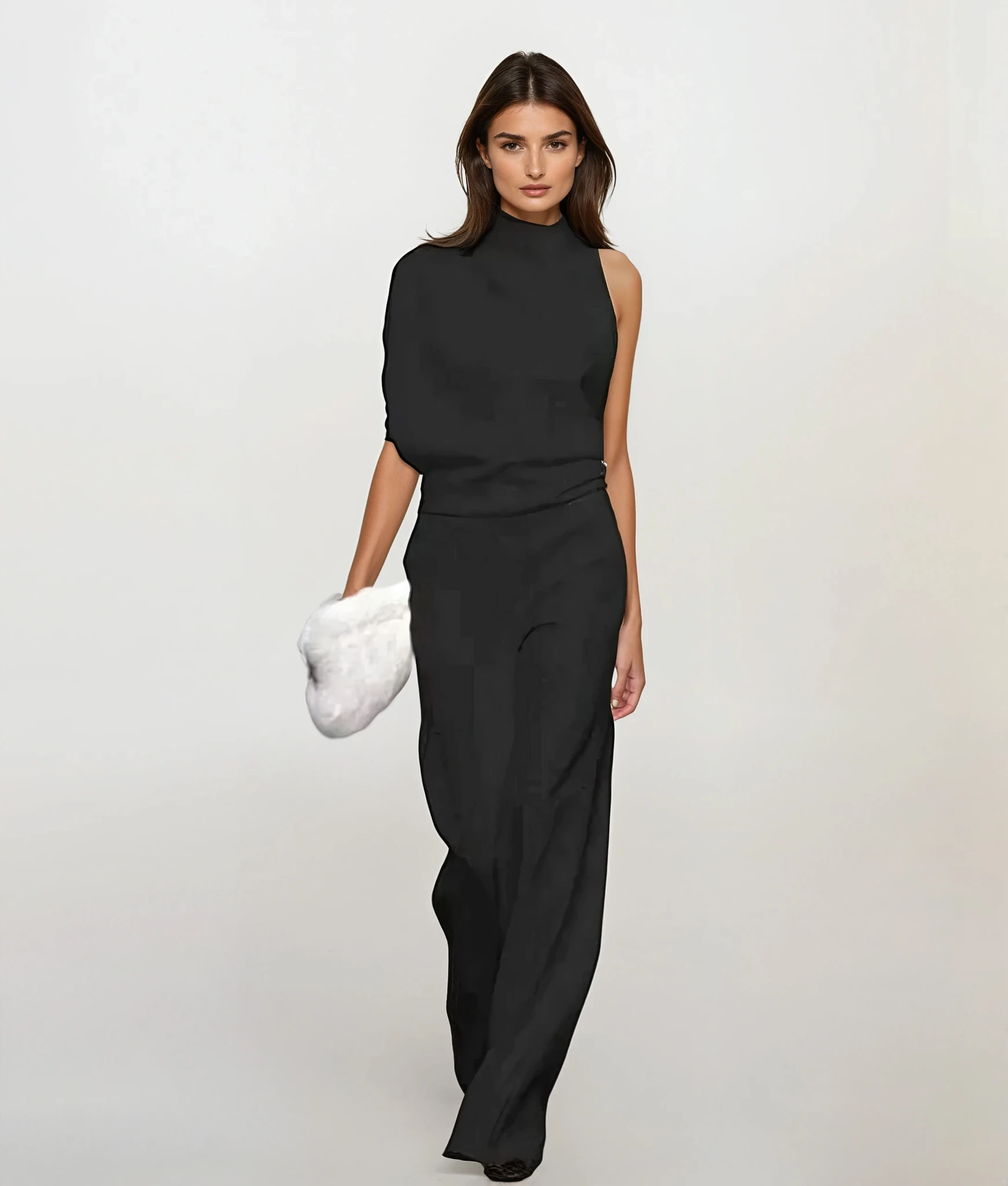 Design: One-shoulder met hoge hals voor een moderne, asymmetrische look